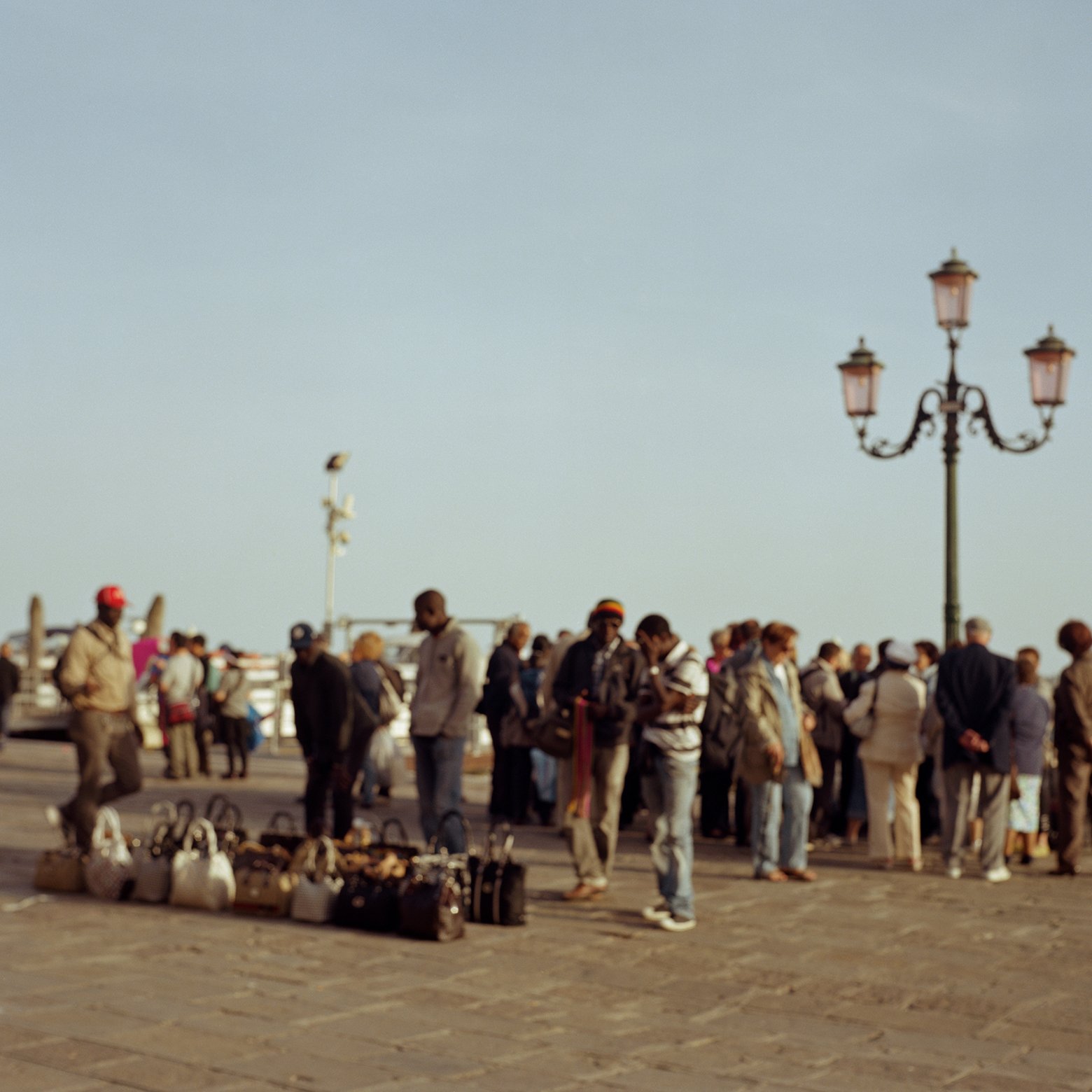 The reiteration of this project from its earlier version moves the viewer closer to individuals who were previously only distant figures in the Venetian landscape, facilitating the original intention of research: visualizing migration. A visualization that juxtaposes the classic romanticised image of the suited Caribbean migrant against the contemporary reality of life for early twenty-first century migrants selling bags, belts, scarves, and other items for tourist purchase.